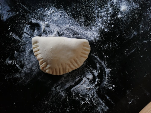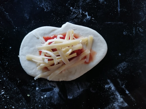 Vouw de pockets dicht en maak de randjes dicht met een vork. Leg de pizza pockets op een met bakpapier beklede bakplaat.