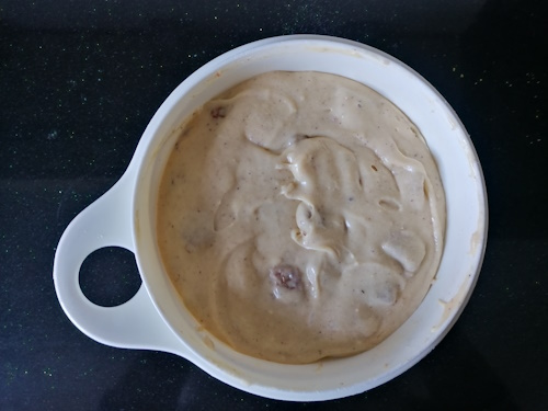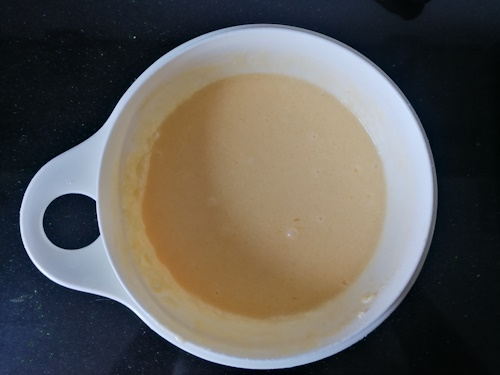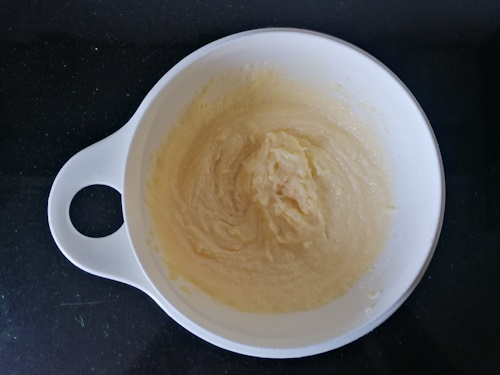 Voeg daarna de eieren toe (een voor een gaat het makkelijkst) en meng deze er doorheen.