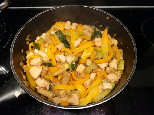 Wok met kip, paprika en courgette