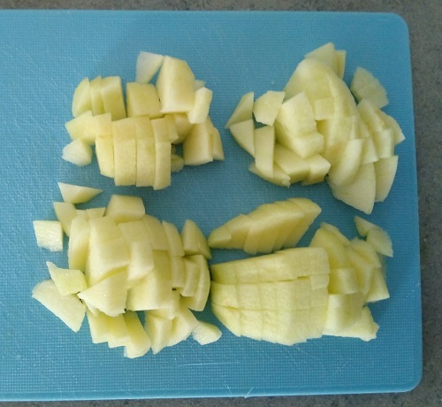 Schil de appels, haal het klokhuis eruit en snijd ze in kleine plakjes, zie foto.