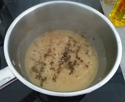 Voeg de bloem en het bouillonpoeder toe aan het pannetje en roer goed zodat het gaat binden.